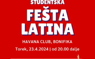 V torek, 23. 4. 2024 vas ponovno vabimo, da se nam pridružite na družabnem plesnem večeru Fešta Latina v Havana club Koper! Vstopnine ni, večer bomo pričeli z učnimi uricami, kjer boste lahko ponovili osnovne korake, zato vabljeni tudi tisti, ki se niste uspeli udeležiti naših plesnih tečajev. Se vidimo!